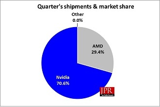 Nvidia’s market share increased 2.2% from last quarter and 0.4% from last year, Intel lost 1.6% market share from last quarter, and AMD’s overall share decreased 0.6%, from last quarter
